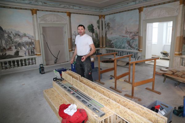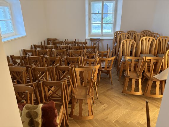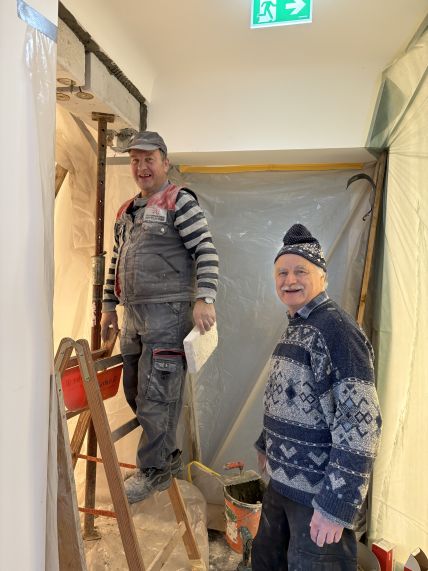Diverse Malertätigkeiten, Reinigung und wieder neu setzen des Kaminofen im Bischofszimmer, Maurerarbeiten Außenbereich, Verlegung Fußbodenheizung und neuen Parkettboden neue Pfarrhofkapelle (ehem. Pfarrsaal), erste Kirchenchorprobe im neuen Pfarrsaal,
