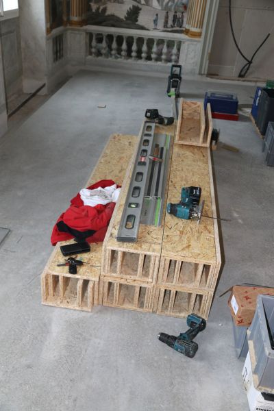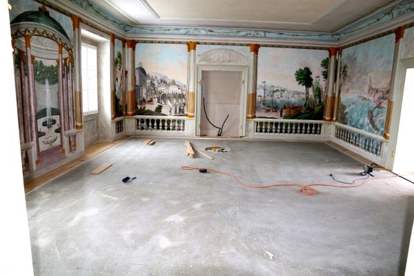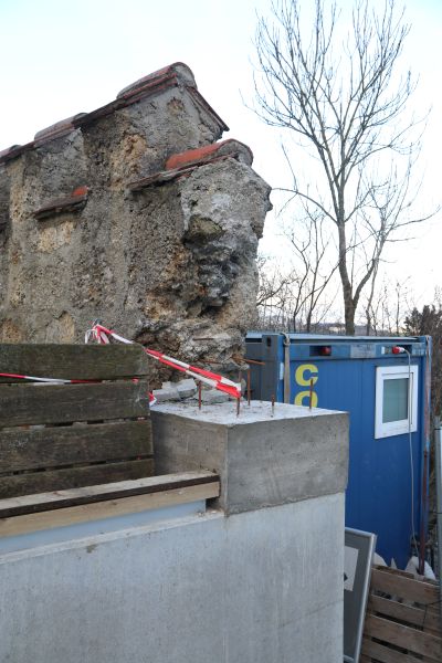Abdecken der Wandmalereien im Bischofszimmer, Kanal- und Erdarbeiten im Außenbereich, Kellerdecke unter Süd Trakt erneuert, Bodenplatten im Wohnungsbereich betoniert, erste Elektroinstallationen vorgenommen, Schutt vom Dachboden geräumt, Aufstellen des Baukrans,