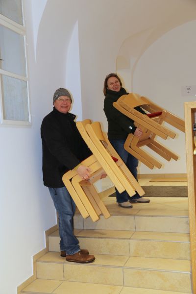 Diverse Malertätigkeiten, Restaurationsarbeiten Bischofszimmer, Maurerarbeiten Außenbereich, erste Veranstaltungen im neuen Pfarrsaal (Weihnachtsfeier Firma ETM, Frühstück nach Rorate, Musischer Advent)