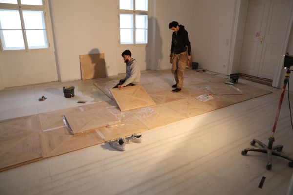 Abhängedecke montiert, Elektroinstallationen vorgenommen, Diverse Spachtel- und Malertätigkeiten, Fliesenlegerarbeiten, Böden verlegt, Sanitäranlagen montiert, Kästen zusammengebaut, Küchen montiert