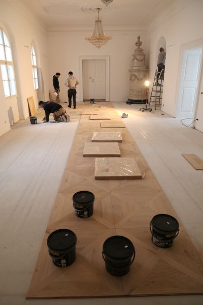 Türrahmen Bischofszimmer abgebeizt, Abhängedecke montiert, Elektroinstallationen vorgenommen, Diverse Maurer-, Spachtel- und Malertätigkeiten, Maurer- und Malerarbeiten an der Außenfassade, Fliesenlegerarbeiten, Böden verlegt,